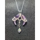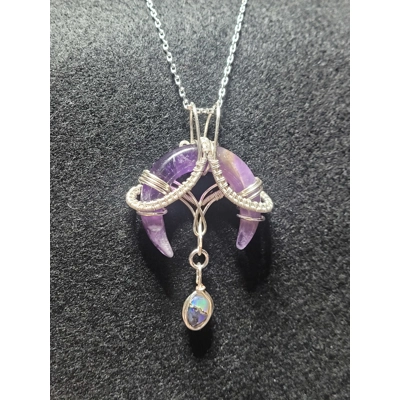 The pendant features a mesmerizing blend of amethyst and opal, two gemstones known for their unique properties. Amethyst, with its rich purple hues, is believed to promote calmness and clarity, while opal adds a touch of iridescent magic, reflecting a spectrum of colors that change with the light. Together, they create a harmonious balance that is both eye-catching and soothing.