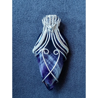 Introducing our stunning Chevron Amethyst Necklace with a delicate silver wire wrap that perfectly showcases the natural beauty of this exquisite purple stone. This unique necklace is not just a piece of jewelry; it's a statement of elegance and style that you can wear every day or on special occasions.
