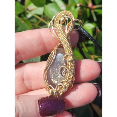 Don't miss out on the chance to own this beautiful Rainbow Lattice Sunstone Wire Wrapped Pendant. Add it to your collection today and let your style shine!